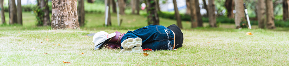 从马路牙子、公园草坪到商场角落,人人练就了随处补觉的本领。