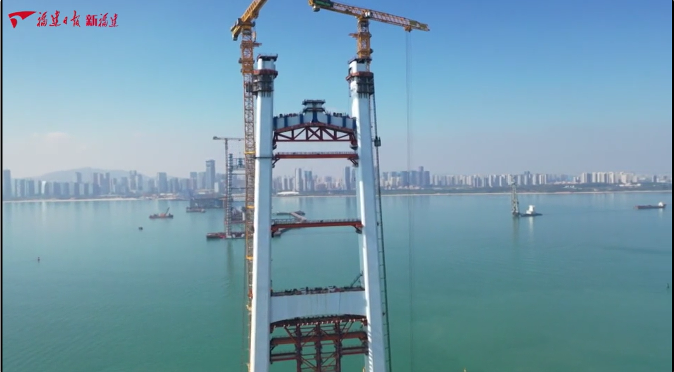 12月1日晚,随着最后一个钢壳精准吊装到位,厦金大桥厦门段关键控制性工程刘五店航道桥主塔顺利封顶。