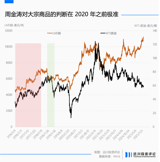 我们以伦敦铜和WTI原油为例,一直到2019年,周金涛的预测的确有一种“道破天机”的精准。