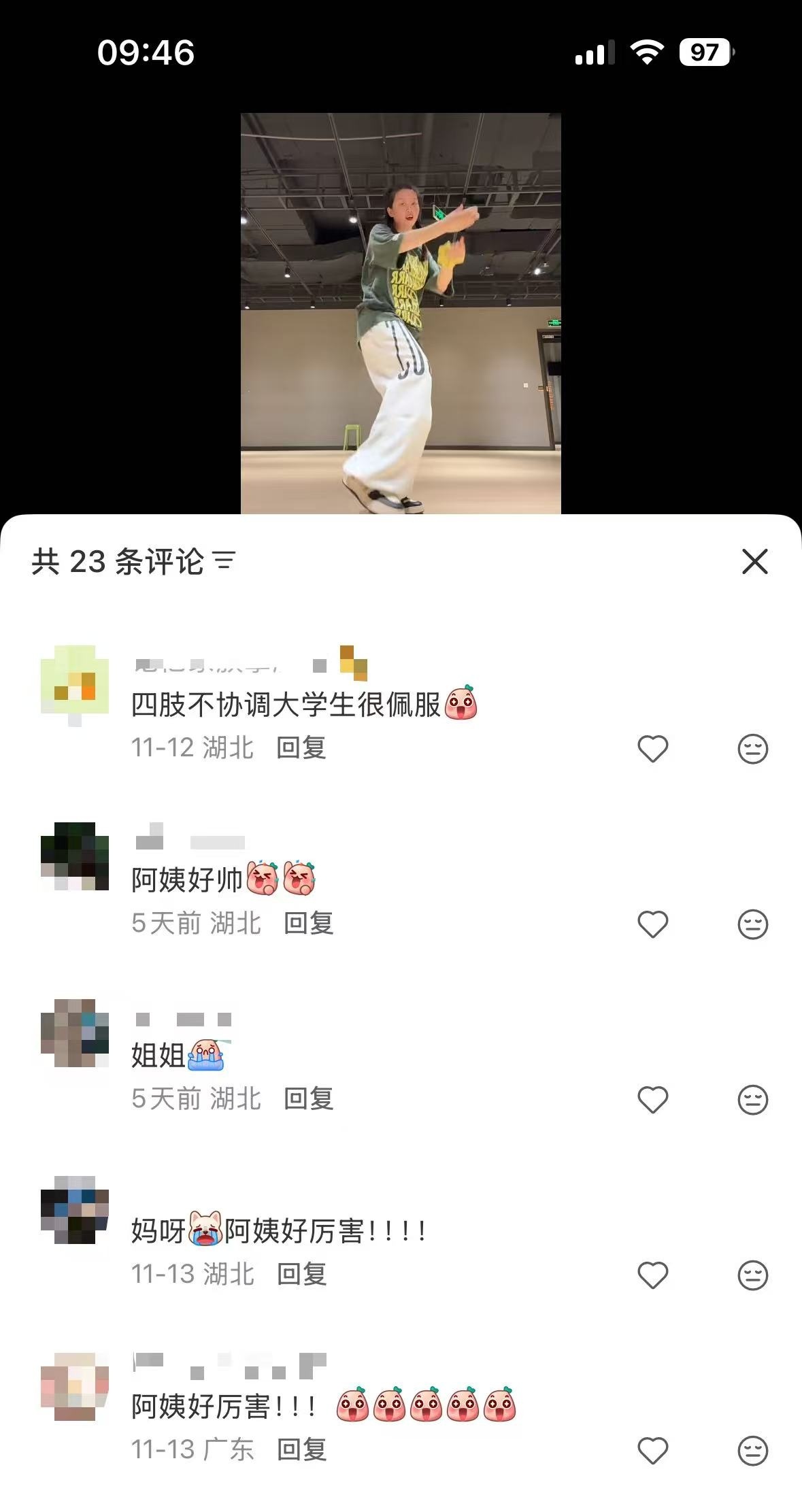 因为跳舞,张小庆和学生们有了更多交流。她发布的跳舞视频,最高一条播放量超过百万。不少学生在网上刷到她,特意来档口鼓励她;一些同样喜欢跳舞的同学还会约她一起上课;音乐、舞蹈专业的学生也邀请她参加社团活动。虽然通常是学校舞蹈社团课上唯一的“阿姨”,但她总能很快融入大家,和年轻人们一起挥洒汗水。