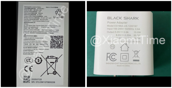 电池标签显示,该平板额定容量为7300mAh,属于10-11英寸平板的常规配置,配合骁龙8s Gen 3的能效表现,预计可满足长时间游戏需求。但泄露的充电适配器(型号ES166A-US)显示最高支持20W输出(5V/3A、9V/2.22A、12V/1.67A),这与黑鲨手机常见的120W快充形成鲜明对比。