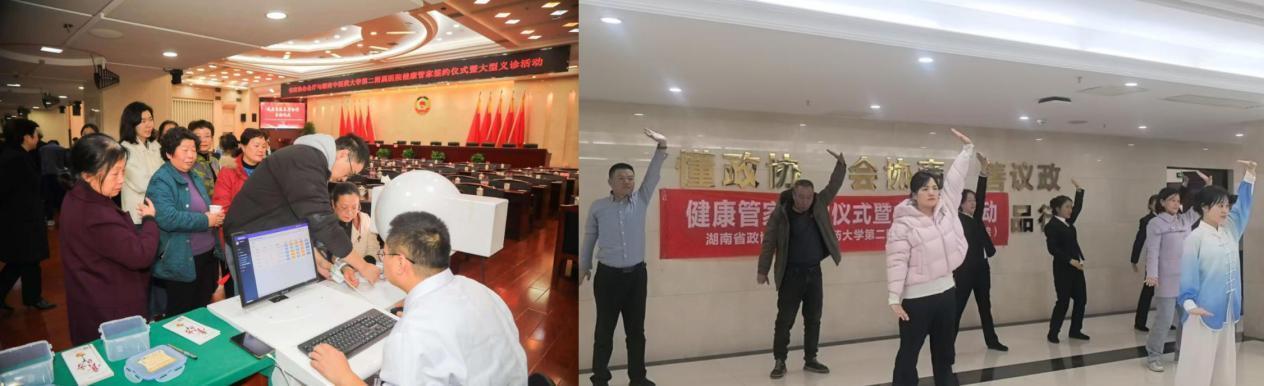 在湖南中医药大学的统一部署下,湖南中医药大学第二附属医院(湖南省中医院)于2025年11月正式启动优质服务行动。为进一步落实该行动要求,切实保障机关干部职工健康,推动中医药服务进机关,12月4日下午,湖南中医药大学第二附属医院(湖南省中医院)与湖南省政协在省政协机关举行“健康管家”签约仪式暨大型义诊活动。省政协副秘书长谭建上、办公厅行管办主任刘成、唐军,湖南中医药大学第二附属医院(湖南省中医院)党委副书记、院长刘春华,党委委员、副院长谢勇等出席活动。