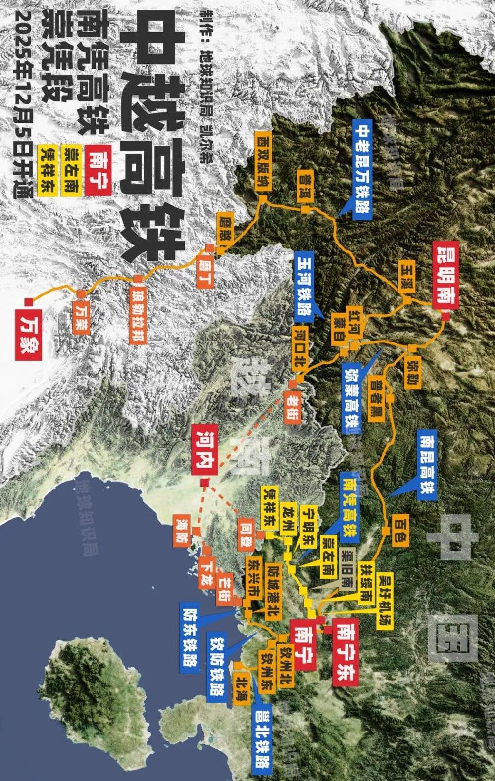 随着南凭高铁全线开通运营,也标志着中越三条高铁/快铁的中国段全面建成通车。