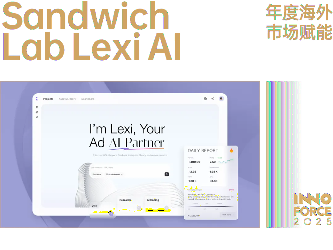 2025 年初推出的 Lexi AI (lexi.studio),以自研的 Evolion 引擎为核心——这是一套具备自我进化机制的智能决策系统,能够在海量投放数据与多模态商业信号中持续学习与优化,在动态市场中自主理解素材、文案、受众与行为等非结构化数据,并生成更高效的策略路径。这一突破标志着 AI 从「生成内容」迈向「生成结果」的新征程。
