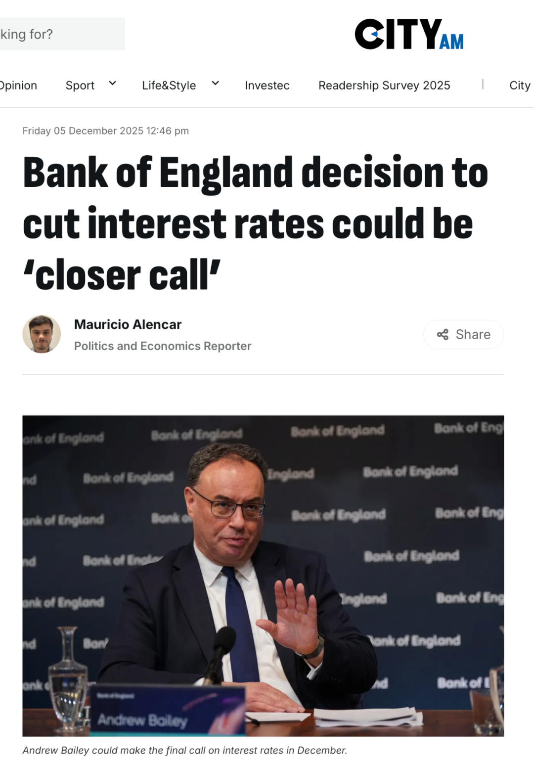 ● 经济学家预测:英国央行很快会宣布降息