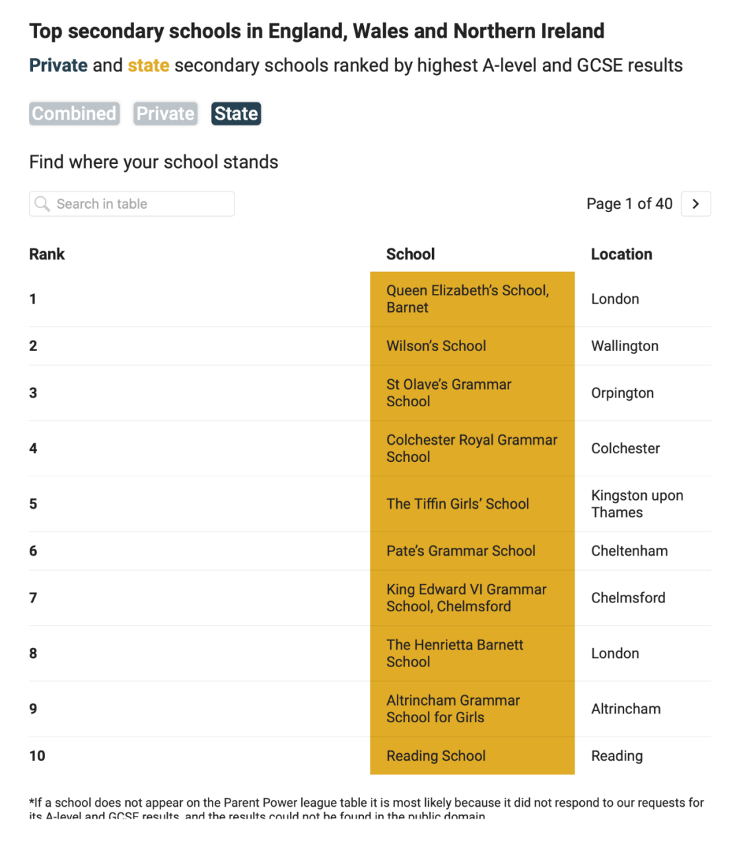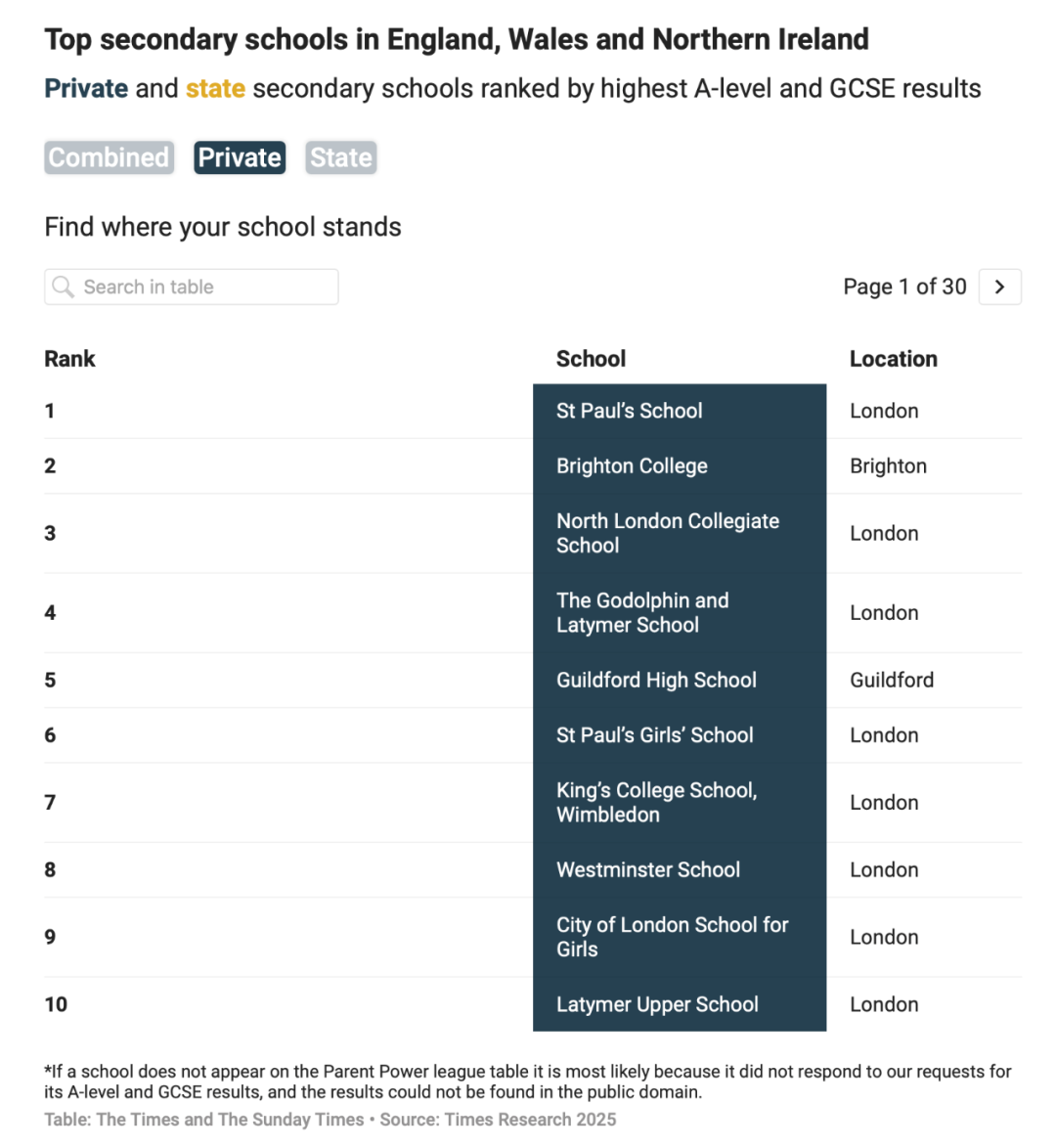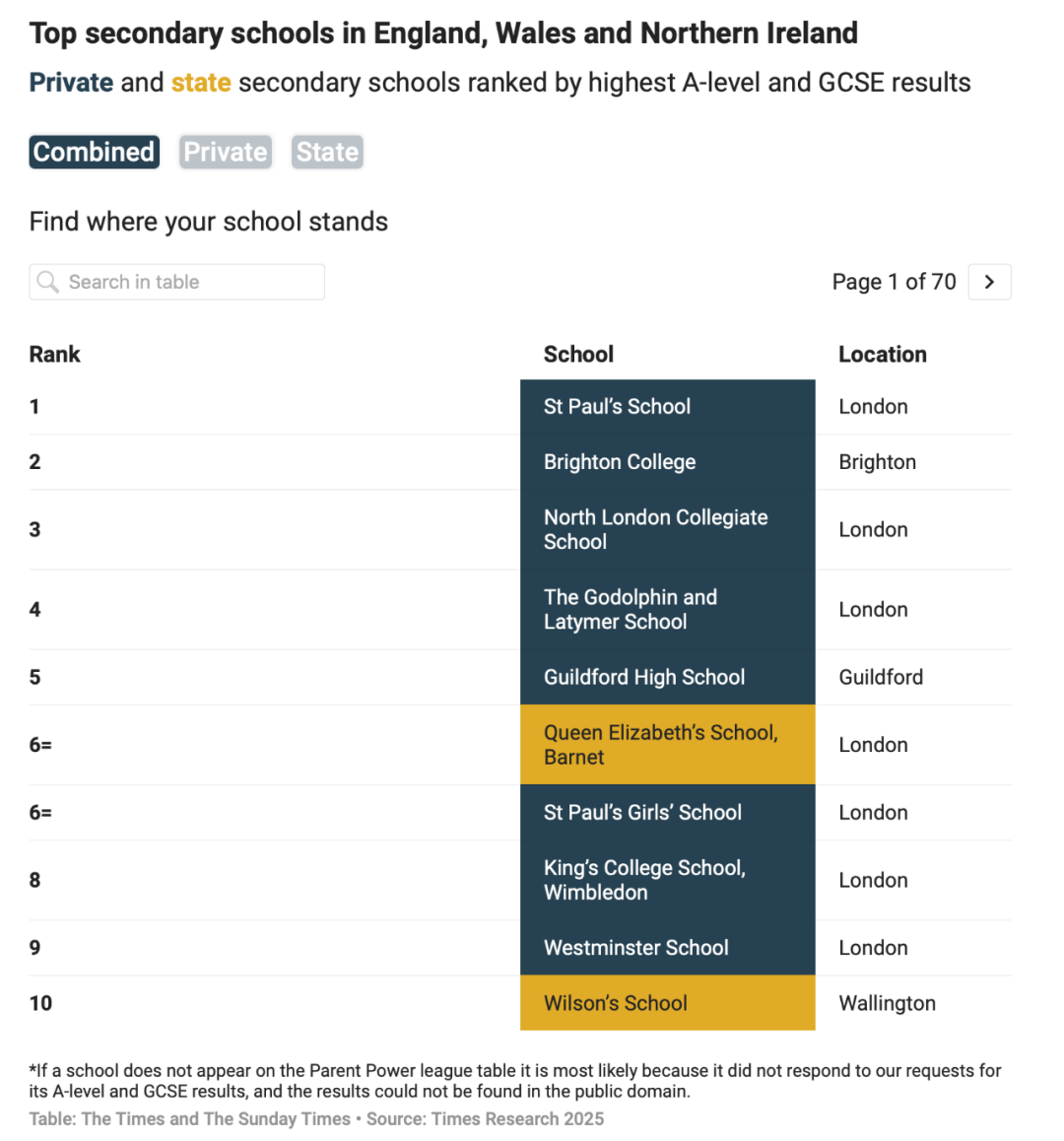 ● 《泰晤士报》发布最新英国中学排名