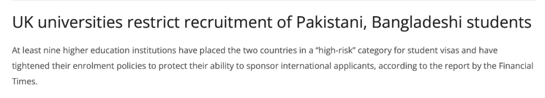 ● 英国9所大学停止招收孟加拉和巴基斯坦留学生