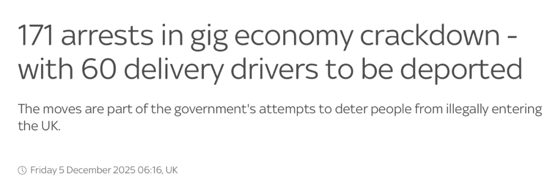 ● 英国加强打击非法劳工,60名外卖送餐员将被驱逐出境