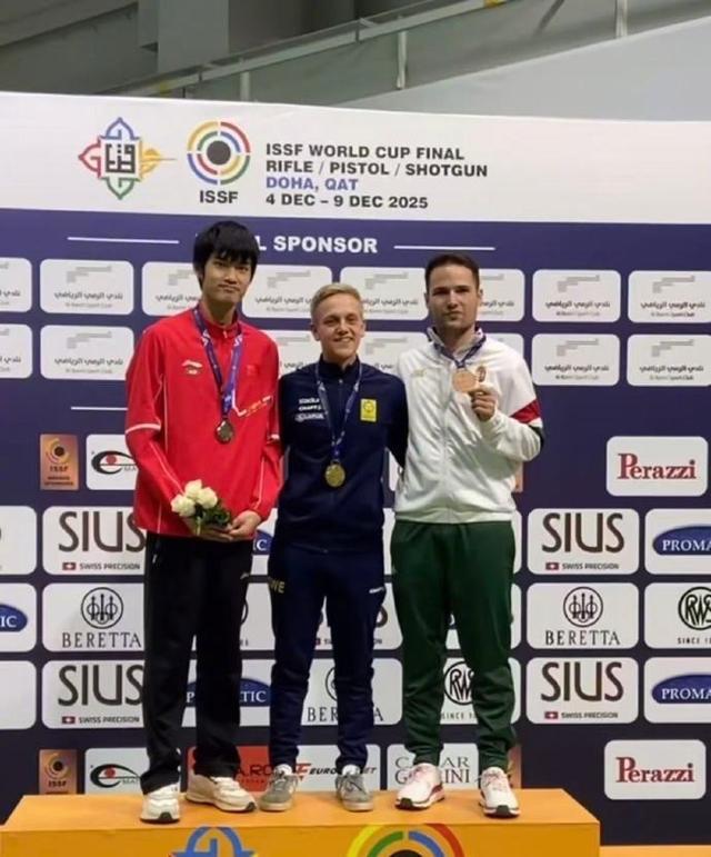 12月6日,2025射击世界杯总决赛男子10米气步枪决赛,资格赛排名第一的盛李豪在前半程发挥一般,后半程奋起直追,最终以252.6环、0.4环之差惜败瑞典选手林德格伦,获得亚军。