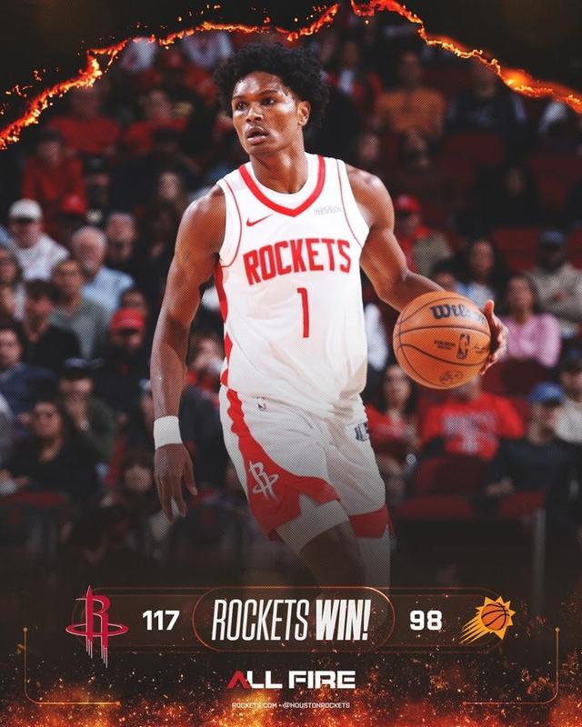 北京时间今日,在NBA常规赛中,休斯顿火箭队在主场以117-98击败了菲尼克斯太阳队,取得了两连胜。