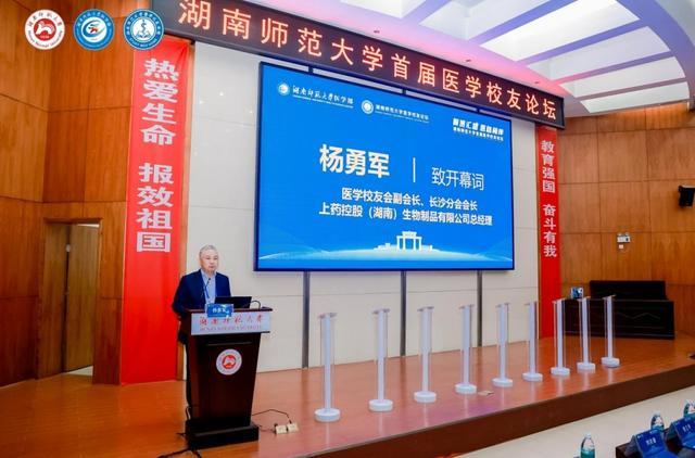 开幕式上,湖南师范大学医学校友会副会长、长沙分会会长杨勇军对校友们的归来表示热烈欢迎。他倡议全体校友携手,推动校友智慧与政府决策的“智策融合”、产业资源与临床需求的“供需融合”、校友经济与地方发展的“成长融合”,共同为“健康中国”“健康湖南”建设添砖加瓦。