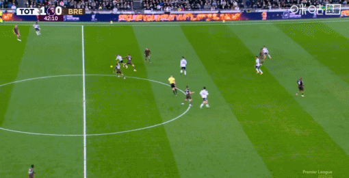 在今天晚上进行的英超第15轮热刺主场对阵布伦特福德的比赛中,哈维-西蒙斯在第43分钟打入一球,帮助球队将比分扩大为2-0。