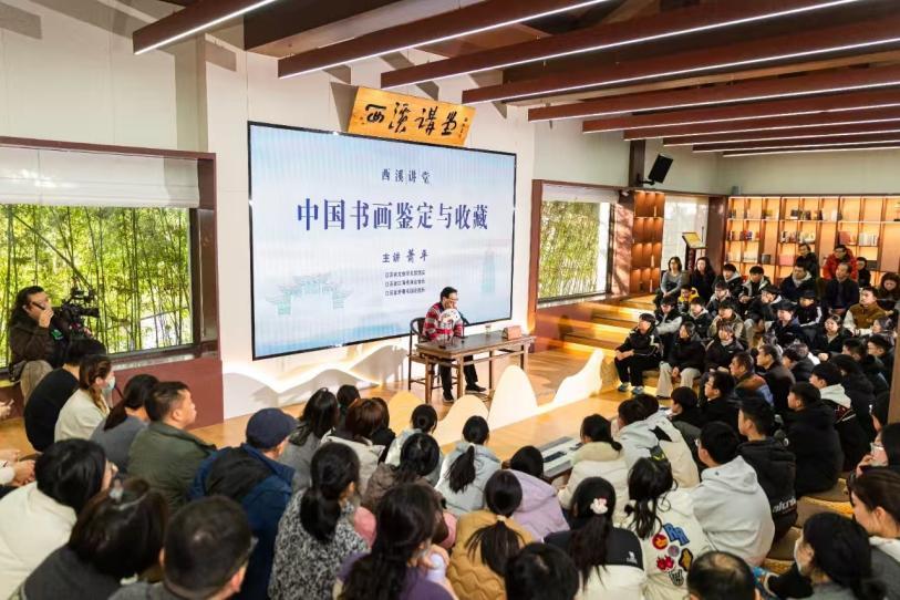 据主办方介绍,此次展览将持续至2026年1月5日。开幕当天下午,西溪讲堂座无虚席,江苏省文史研究馆馆员、江苏省江海书画会会长、江苏省开明书画院院长萧平带来《中国书画鉴定与收藏》专题讲座,与观众分享其数十年的艺术鉴赏心得,吸引了大批艺术爱好者前往聆听。