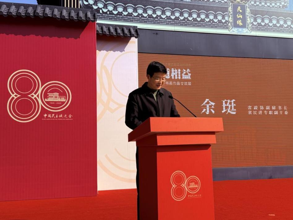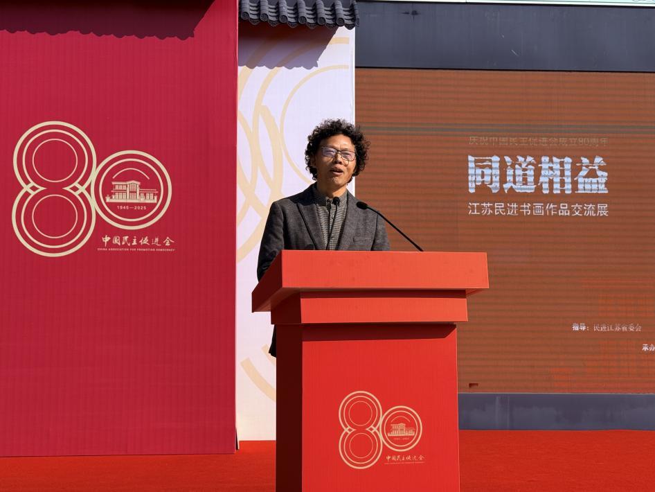 余珽副主委在讲话中,围绕“同道相益”的主题展开阐述。他指出,“同道”源于共同的理想与追求,“相益”则体现在艺术的相互启迪与精神的彼此滋养。民进艺术家们以笔墨书写时代,以丹青绘就华章,正是“立会为公、参政为民”传统的生动实践。