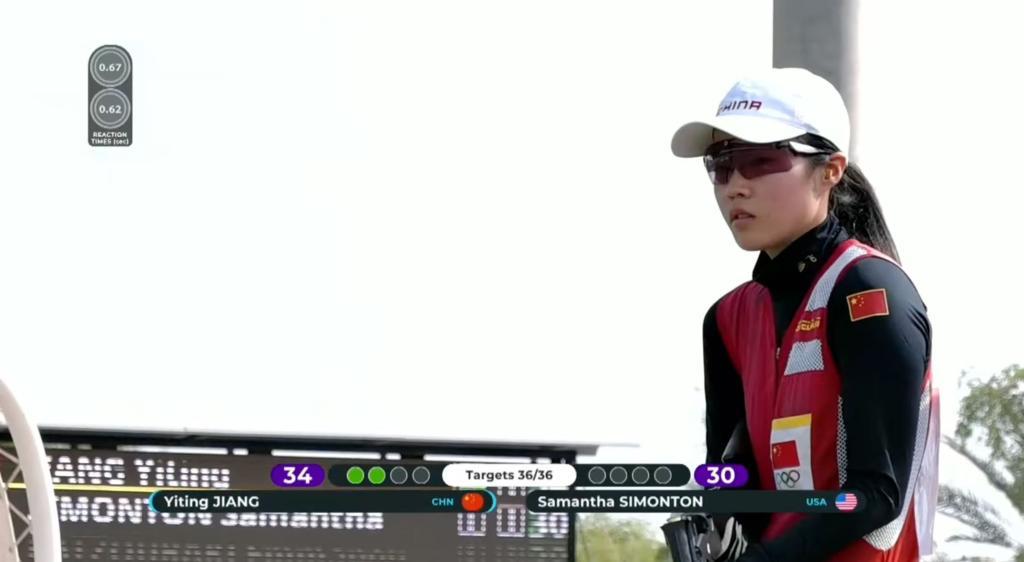 决赛中,21岁的江伊婷延续火热手感,前32靶全部命中,以领先美国选手萨曼莎·西蒙顿2中的优势晋级最后的决胜轮。随后,率先出场的江伊婷4靶全中,以满中成绩提前夺冠。西蒙顿最终以34中获得亚军,希腊选手埃玛努埃拉·卡楚拉基获季军。另一位晋级决赛的中国选手车雨霏以24中排名第四。