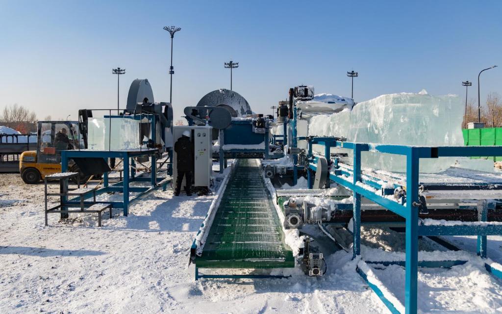 “以往工人手持油锯手工切冰,不仅周期长,冰砌块的质量与施工安全也容易受到影响。”哈尔滨冰雪大世界设计研发部部长丛配玉介绍,“型冰机”的应用实现了机械自动化,减少了施工中的不确定因素,确保冰块达到规范标准。