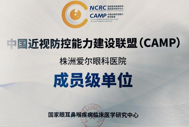 近日,株洲爱尔眼科医院正式被国家眼耳鼻喉疾病临床医学研究中心授予“中国近视防控能力建设联盟(CAMP)成员级单位”称号。