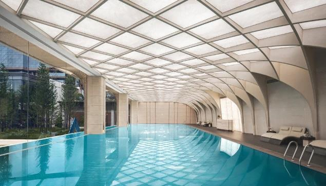 建筑本身,是“可收藏的美学作品”:超流体美学立面用曲线弱化厚重感,13种世界级奢石打造的世界奢石博物馆,让公区成了艺术展,峯萃的奢侈,是肉眼可见的质感,更是舒适的,而非口号里的标签。
