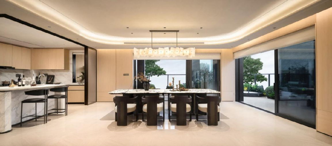 约10米开间+全景玻璃幕墙,让社区园林与城市天际线成了生活背景板: