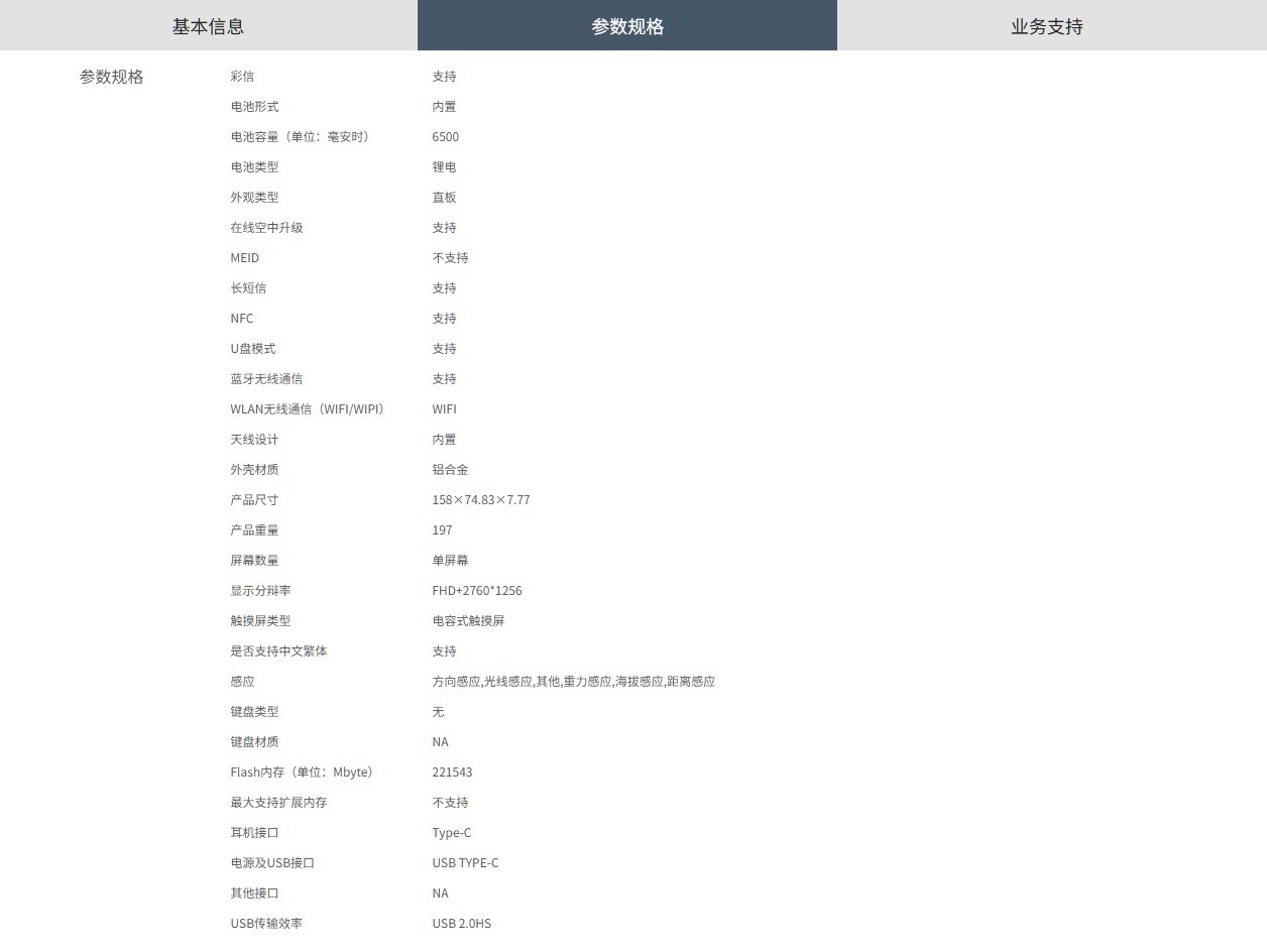 功能配置上,该机支持双卡双待、载波聚合、NFC、蓝牙、WIFI等功能,配备电容式触摸屏,支持方向感应、光线感应、重力感应等多种感应方式,同时具备指纹识别功能,提升使用安全性与便捷性。机身采用铝合金外壳材质,直板造型设计,底部设有扬声器开孔、卡槽及USB-C接口,支持在线空中升级、U盘模式等实用功能。