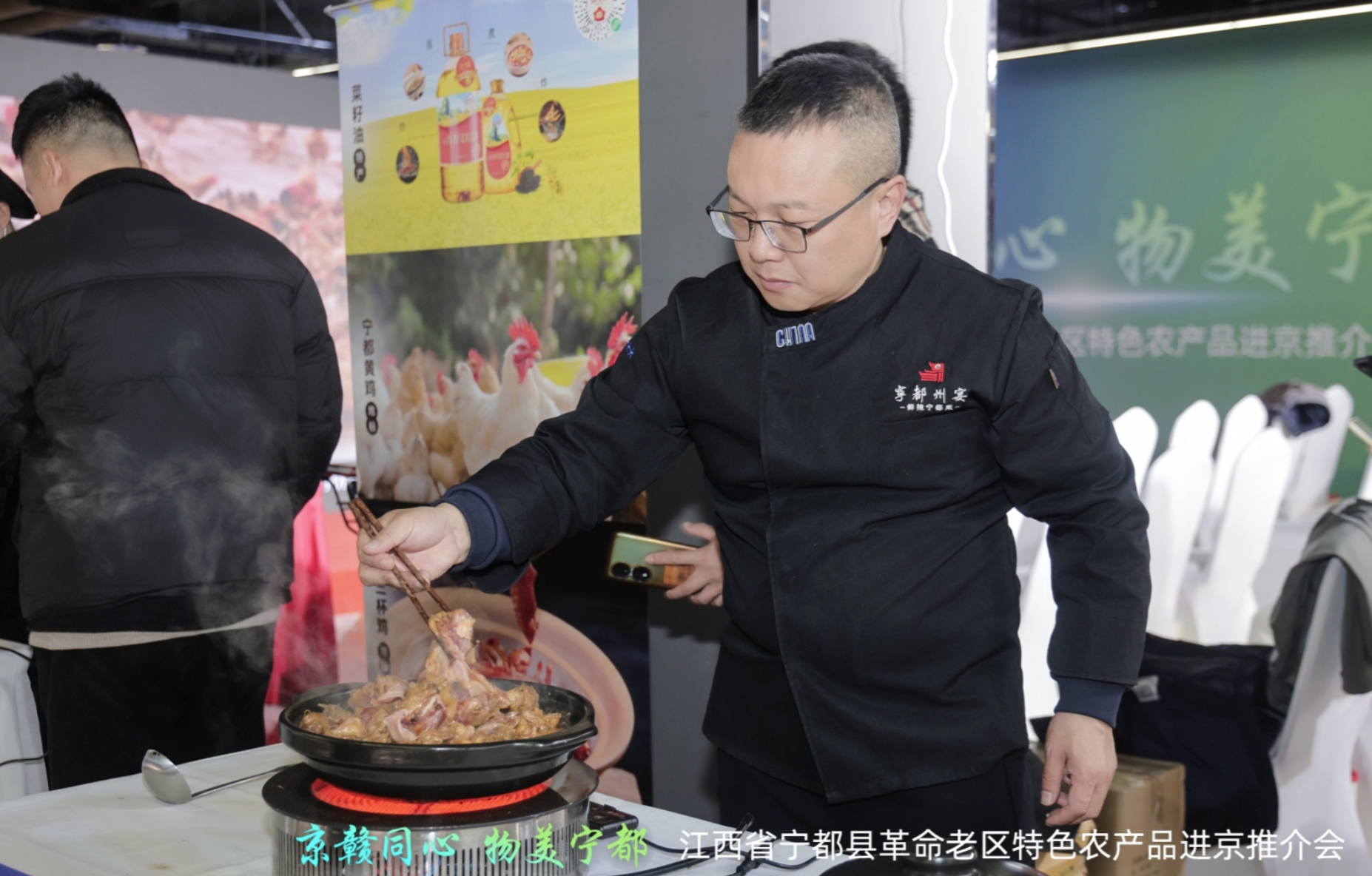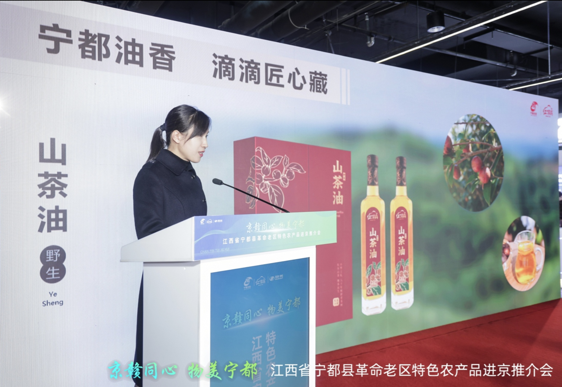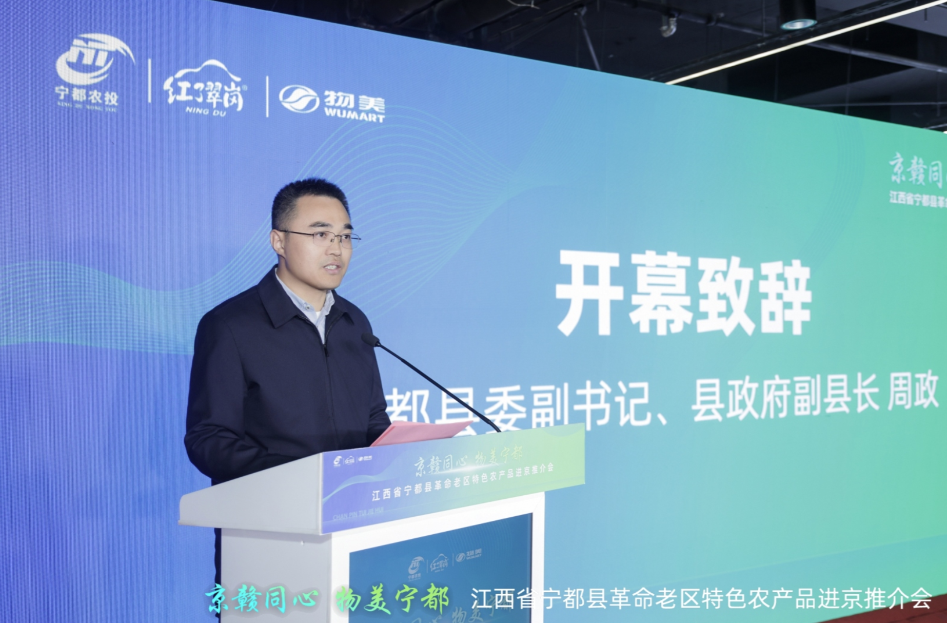 宁都位于江西东南部、赣州北部,县域面积4053平方公里,总人口83.5万,素有“客家祖地、文乡诗国、苏区摇篮、赣南粮仓”之美誉。宁都县委副书记、县政府副县长周政在会上介绍,这里不仅是中央苏区反“围剿”战争的指挥中心和主要战场,更拥有72.1%的森林覆盖率,是赣江源头重要生态屏障。周政强调,新时代的宁都立足“五黄一白”主导产业,推动农业全链条升级,培育了37家食品加工龙头企业,拥有绿色、有机及名特优新农产品认证107个,“宁都味道”已逐步走向全国。此次走进物美超市,既是希望让首都市民品尝到老区的优质农产品,更期待借助北京的平台,让宁都农业迈向更广阔的市场。