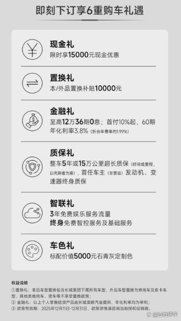 限时优惠窗口期(2025.12.11-12.31)福利拉满:可享1.5万元现金直降、1万元本/外品置换补贴;金融政策更是友好,支持至高12万元36期0息,或首付10%起、60期年化利率3.8%(折合年利率约1.99%)的低息方案,大幅降低购车门槛。