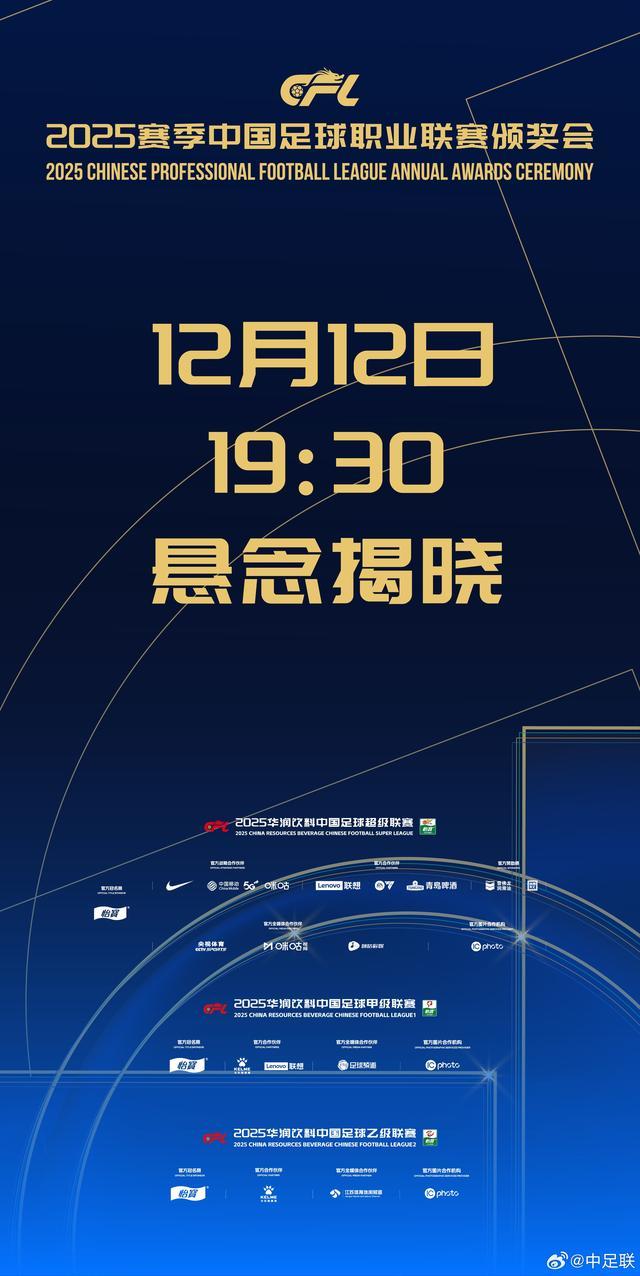 北京时间12月11日,据中足联官方消息,2025赛季中国足球职业联赛颁奖会将于12月12日晚举行。