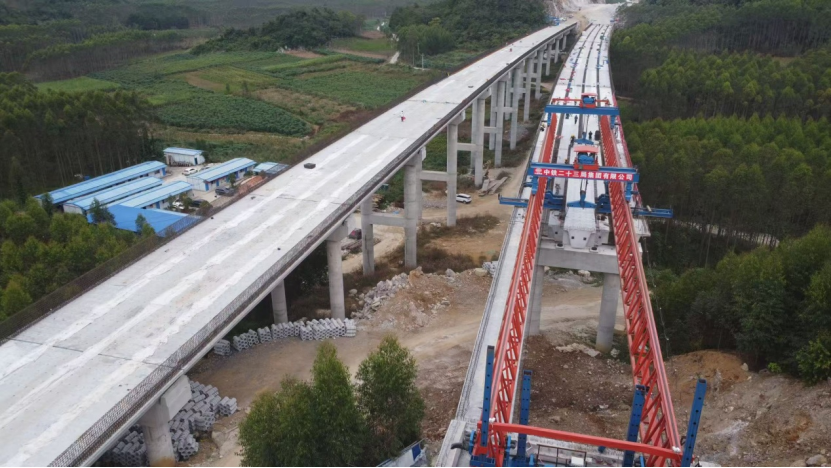 项目规划建设桥梁8座,需预制架设30米箱梁685片、40米T梁40片。截至目前,该标段已完成2座桥梁架设,累计架设箱梁248片,整体施工稳步推进。