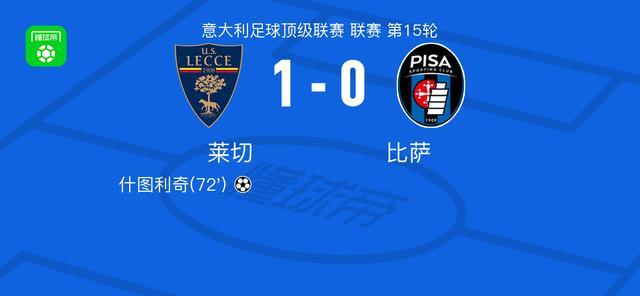 北京时间12月13日,意大利足球顶级联赛第15轮,莱切坐镇主场迎战比萨。比赛中,班达送出关键助攻,什图利奇抓住机会完成破门,为球队攻入制胜一球。凭借此粒进球,莱切以1-0战胜比萨,全取三分。