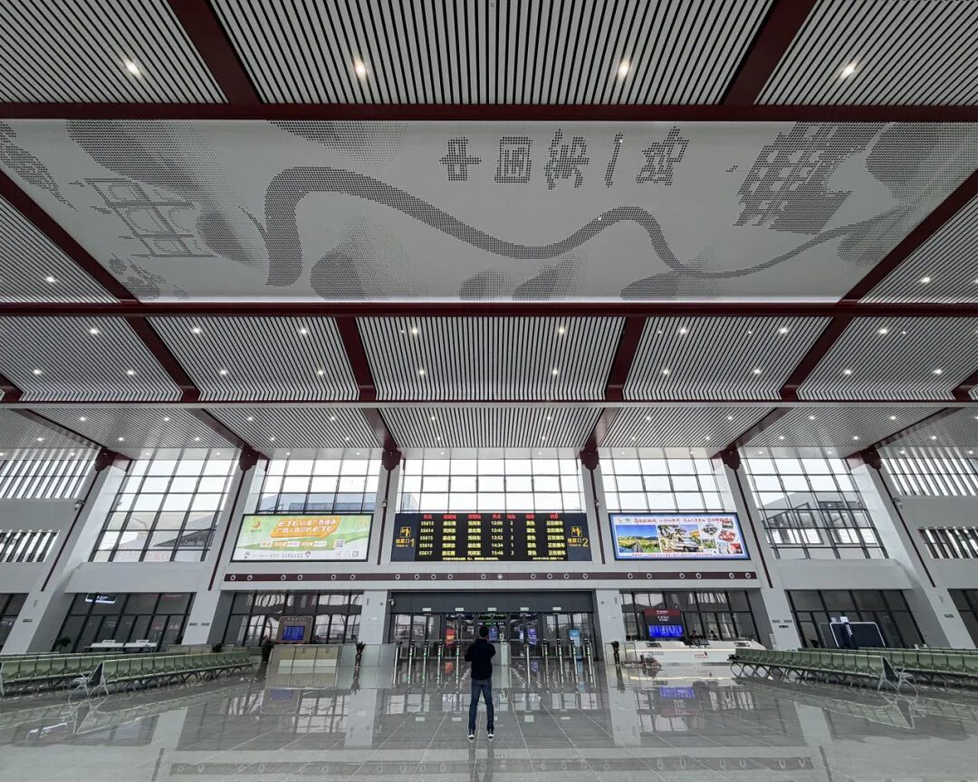 值得一提的是,老龙州火车站是晚清国力衰弱的遗憾印记,新龙州高铁站设计暗藏致敬,候车厅顶部“中国第一路”图案呼应龙州铁路萌芽史及老站跨国铁路规划初心。