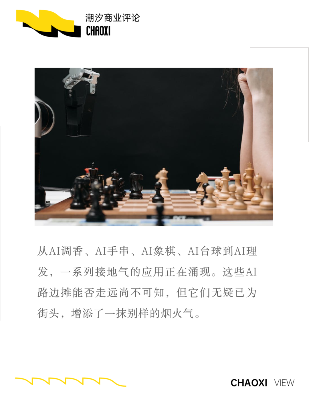 时下,AI正在改造中国路边摊。从AI调香、AI手串、AI象棋、AI台球到AI理发,一系列接地气的应用正在涌现。这些AI路边摊能否走远尚不可知,但它们无疑已为街头,增添了一抹别样的烟火气。