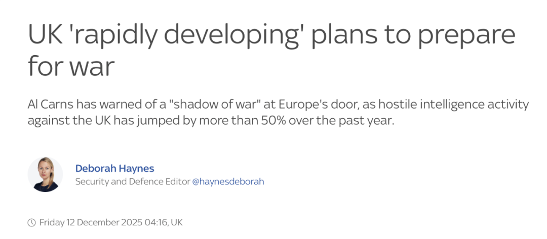 ●英国政府官员:国家正在为战争做准备计划