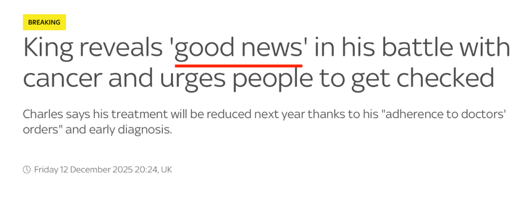 ●英国国王查尔斯公布抗癌好消息