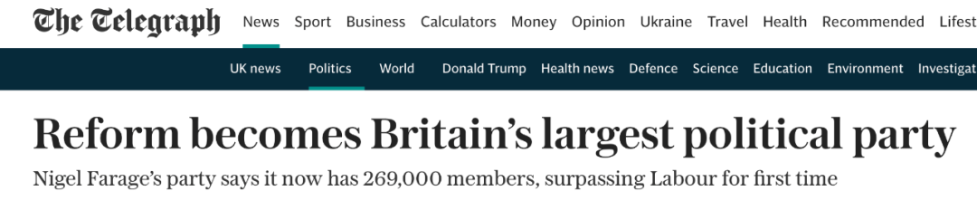 ●成员26.9万人,改革党超越工党成为英国最大政党