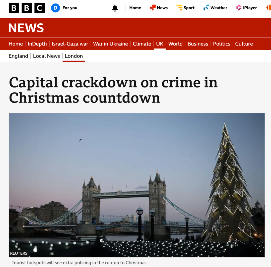 BBC最新消息指出,随着圣诞节的临近,伦敦警方在旅游热点和其他繁忙地区加强打击犯罪和反社会行为的力度。数百名额外的警察将在天黑后巡逻,以保证社区安全,人流量大的地区还会部署便衣警察。
