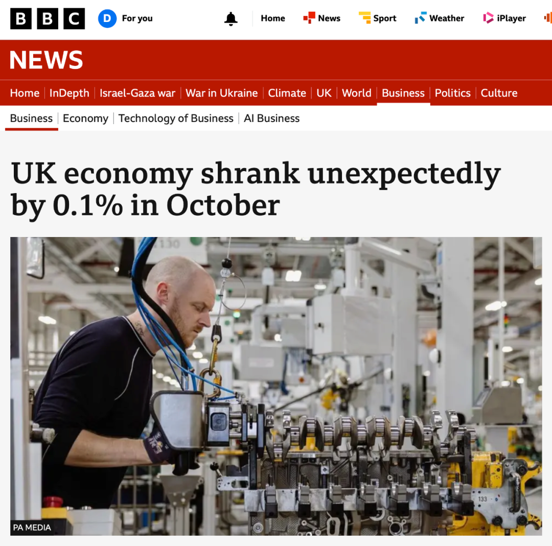 ●十月份英国经济萎缩0.1%,下周降息几乎“板上钉钉”