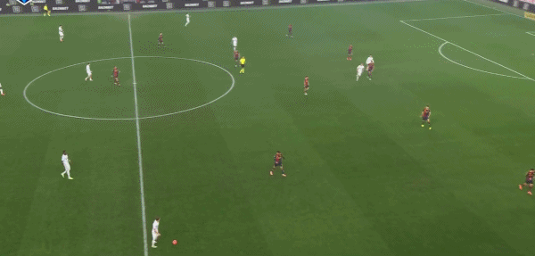 第68分钟,热那亚长传发动反击,维蒂尼亚抓住机会破门,1-2!