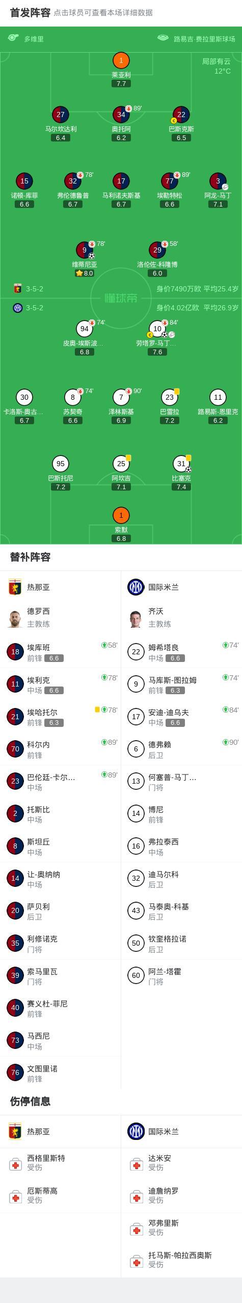 北京时间12月15日1:00,意甲第15轮继续进行,国际米兰作客费拉里斯球场挑战热那亚,本场主裁判为多维里。上半场,比塞克内切低射闪击,劳塔罗传射建功。下半场,维蒂尼亚为热那亚扳回一城。最终,国米2-1客胜热那亚,联赛登顶。
