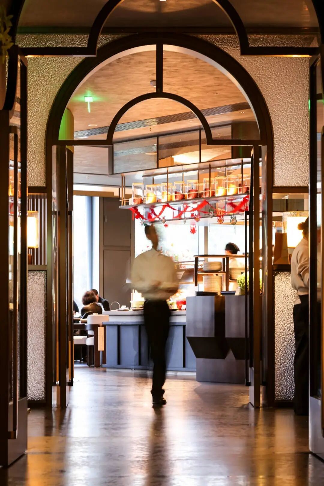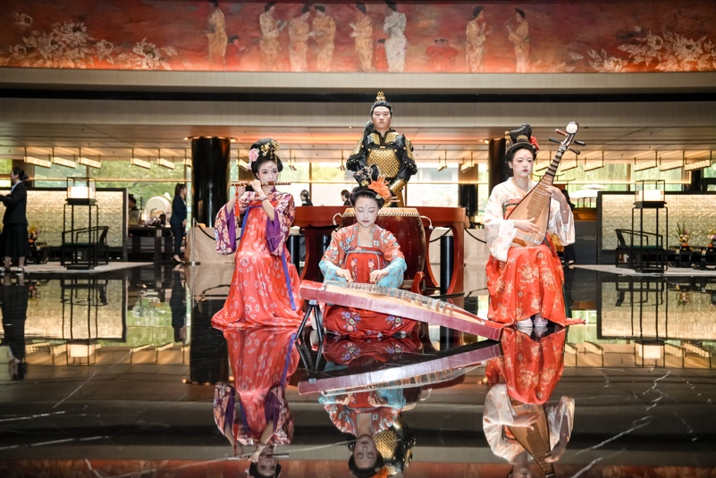 从身着中式特色服饰(华邑联动中国著名时装设计师Grace Chen携手打造的员工制服)、佩戴“中式雅名”铭牌的员工,到融入园林造景的序列感空间;从彩丰楼中餐厅对中华美食的现代表达,到营业至深夜的“麺家”对本地面食文化的致敬;再从“举茗邑”的茶道仪式到层出不穷的“华邑雅集”活动,美学渗透到服务的每一个触点。