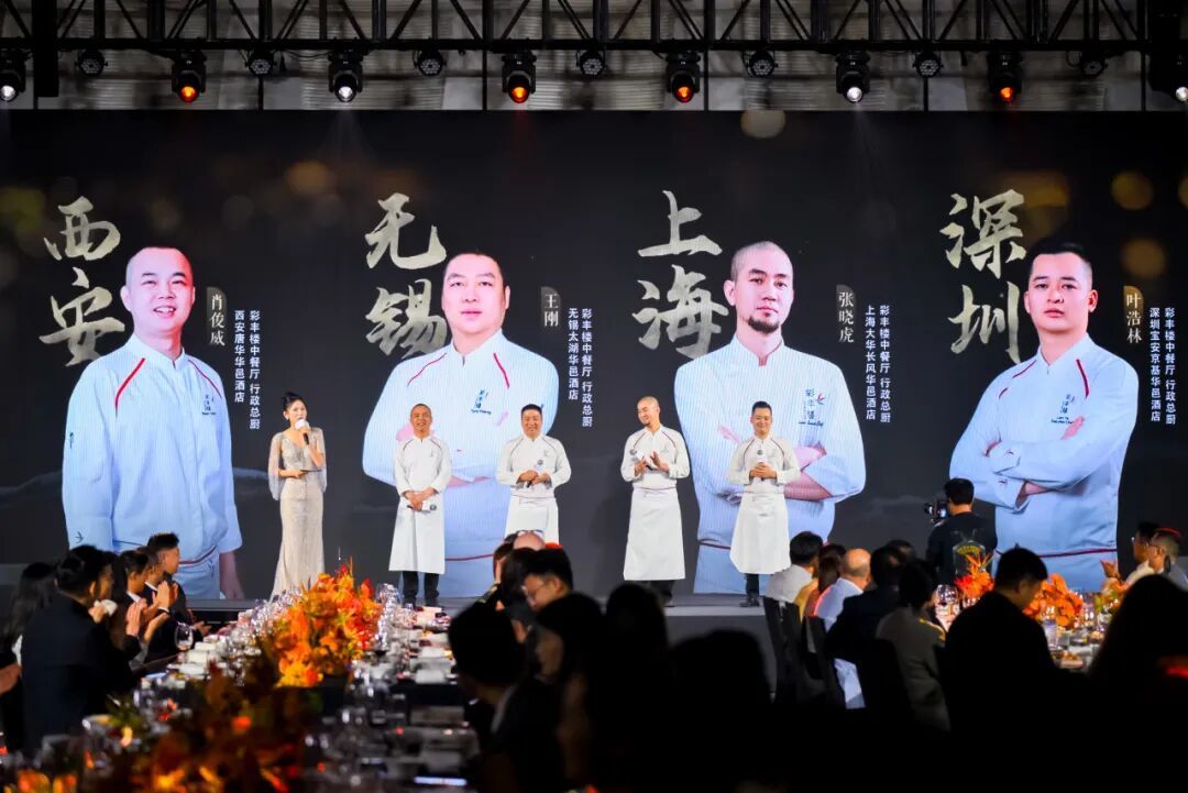 活动当晚,汇集西安、无锡、上海、深圳四地美味的华邑星厨晚宴,或许是最能体现华邑“体验转化”能力的环节。低温烟熏乳鸽腿、际遇酱香大闸蟹冻、金不换酸菜九孔鲜鲍、白玉山家三脆,从汇聚四方特色的冷拼到后续呈现的热菜、主食与甜品。华邑将中华美学生活化,最终落于“食”这一最日常,也最深刻的体验之中,这便是其中华待客之道的又一重表达。