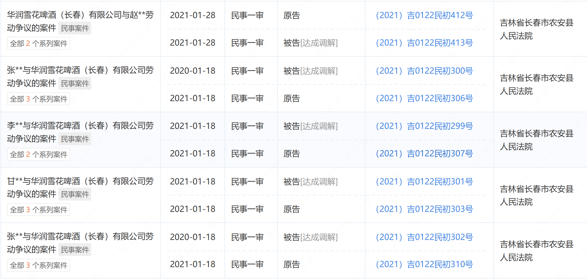 涉雪花长春公司的劳动纠纷不少已达成调解