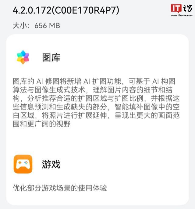 IT之家 12 月 15 日消息,去年 7 月,华为 Pura 70 系列手机获推鸿蒙 HarmonyOS 4.2.0.172 版本升级,带来了新增 AI 扩图功能,可智能识别图片内容并推荐扩图区域和比例,生成画面内容更多的图片。
