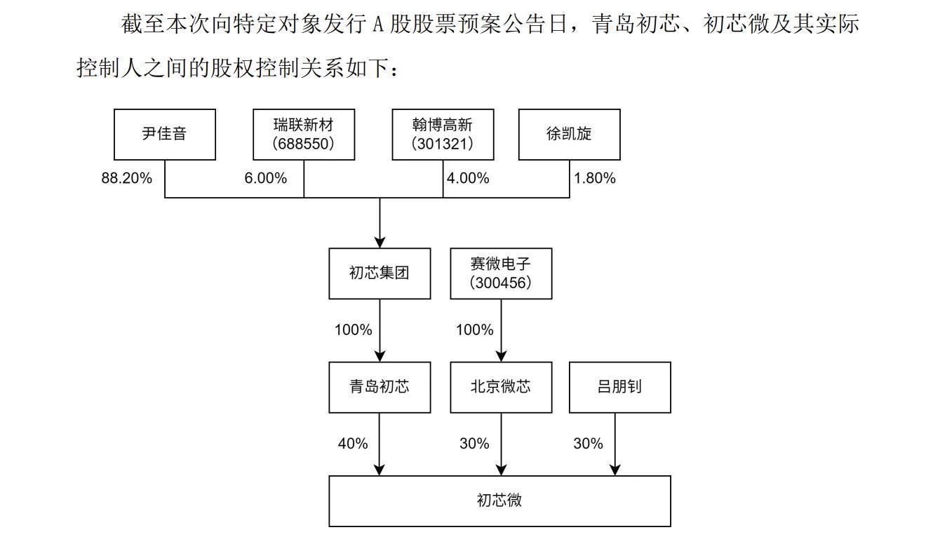或为进一步增强控制权,在上述交易基础上,尹佳音控制的青岛初芯共创科技有限公司(简称“青岛初芯”)还计划以3.95亿元现金认购公司即将定增的全部新股。定增完成后,初芯微及青岛初芯合计持股比例将增至29.99%。