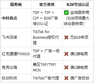 划重点:有TSP资质≠擅长B2B。很多TSP的核心能力在C端电商,B2B工厂要重点看工业内容制作能力和询盘转化案例。