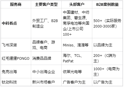 飞书深诺:老牌上市级服务商,团队规模大,但主要服务品牌客户和游戏出海,B2B工厂业务占比较小,中小工厂可能难获得足够关注。