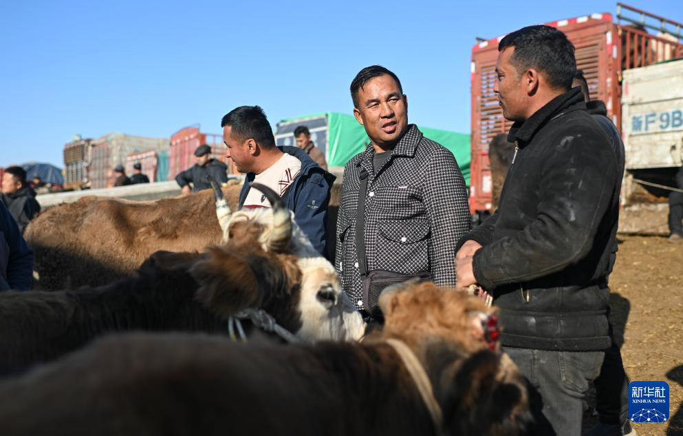 在新疆伊宁县的新疆创锦黄公农产品交易市场,牛羊成群围在栏中,牧民与牲畜经纪人大声商谈、击掌握手、买卖牲畜。这里又称“皇宫巴扎”,历史悠久,是新疆规模较大的活畜交易市场。目前,有超过3000名牲畜经纪人活跃于此,他们是连接牧场与市场的“纽带”——农牧民盼着以优价售卖牛羊等牲畜,但又难以直接接触到买家,不能准确把握市场行情;而各地的买家则希望高效、优惠地购入新疆高质量的牲畜。牲畜经纪人通过自己的经验和人脉,为农牧民与买家牵线搭桥,促成新疆优质畜牧产品销至全国,也助力繁荣乡村经济。