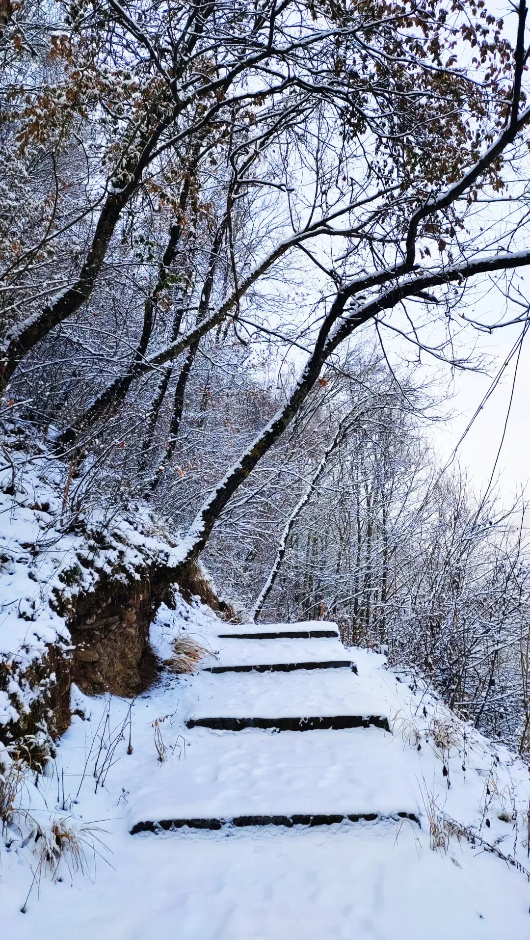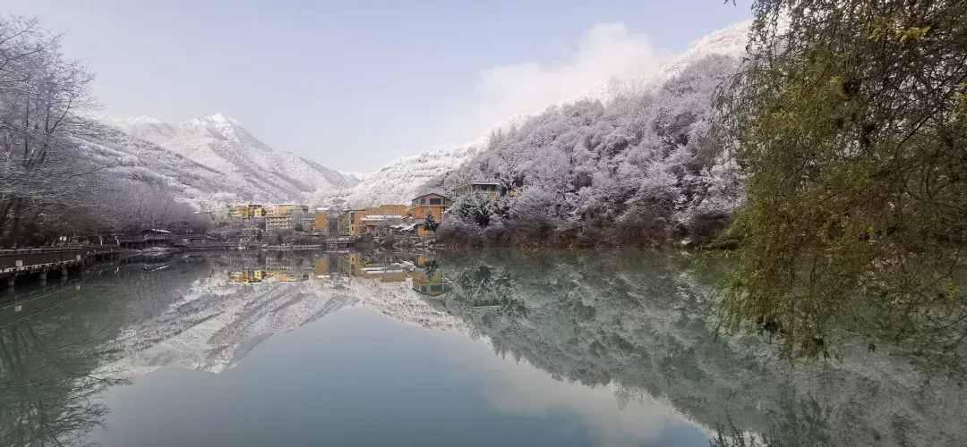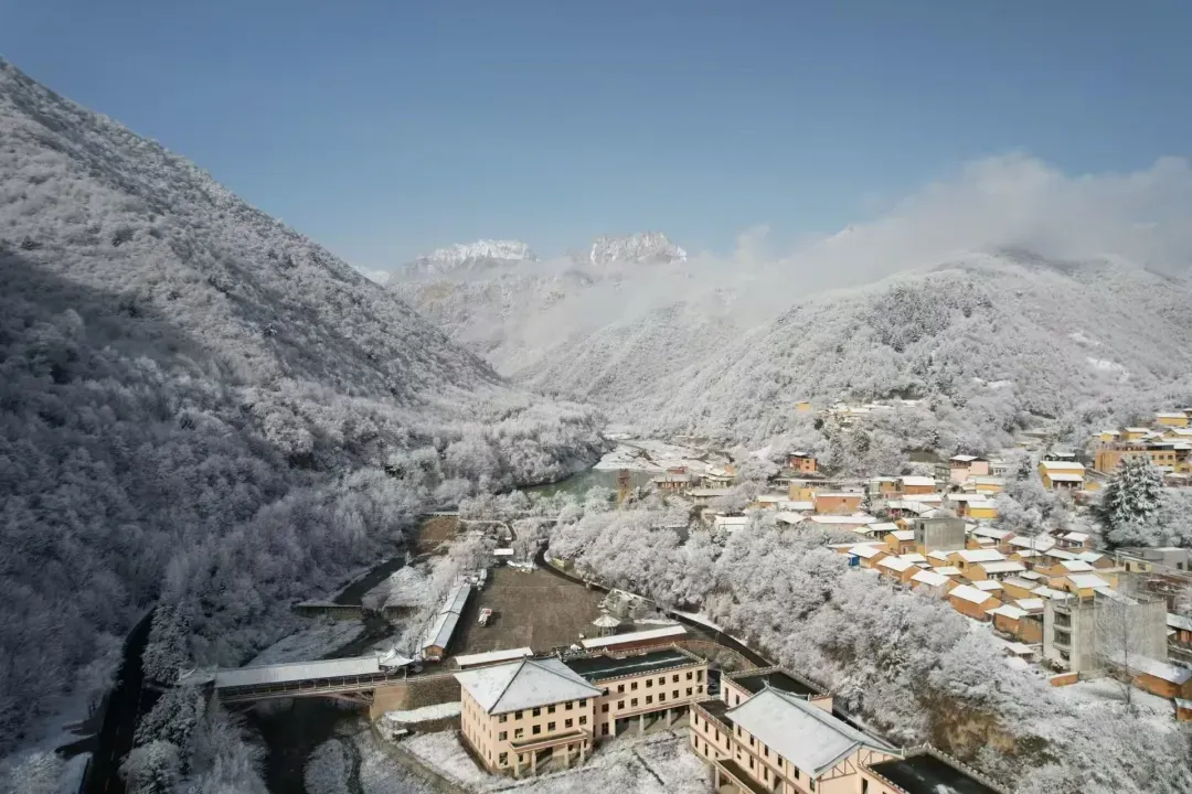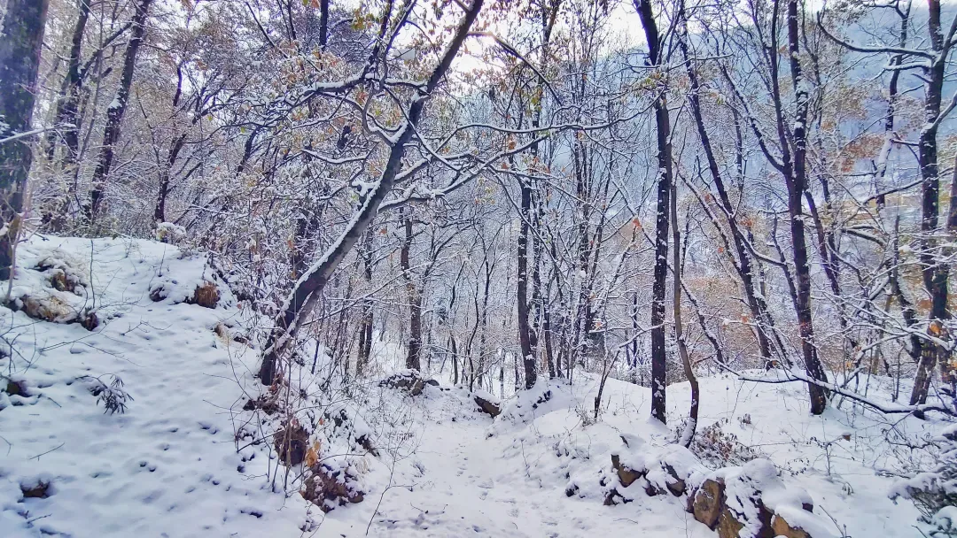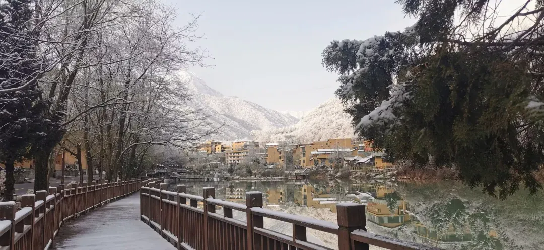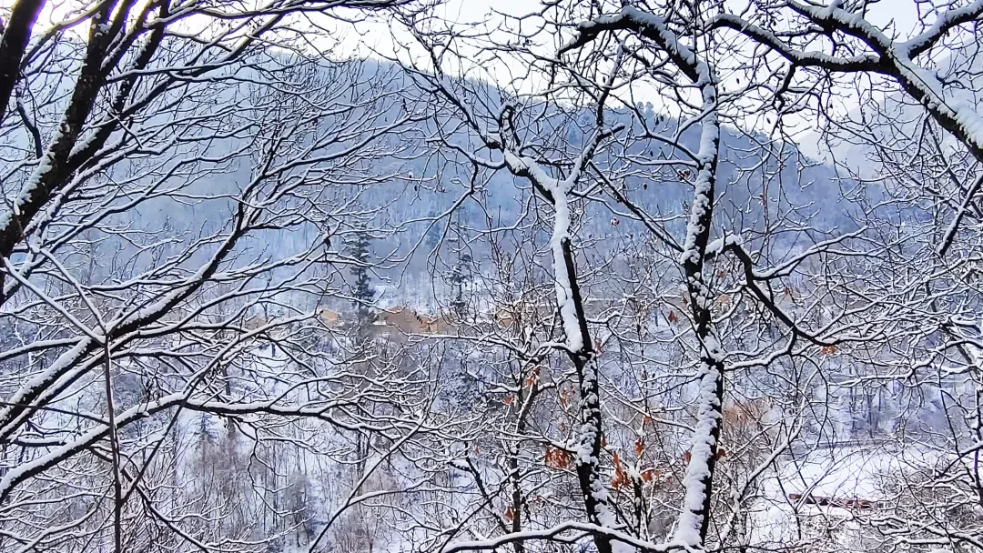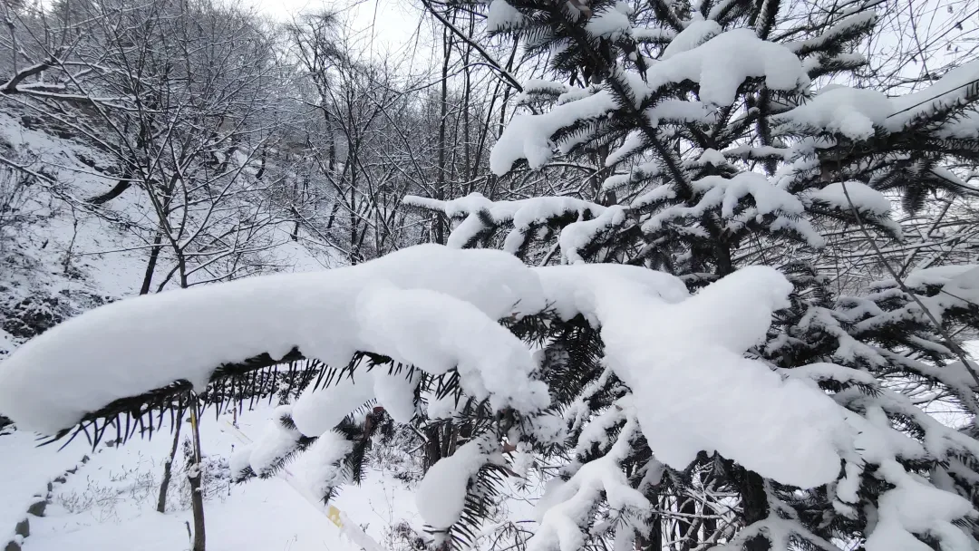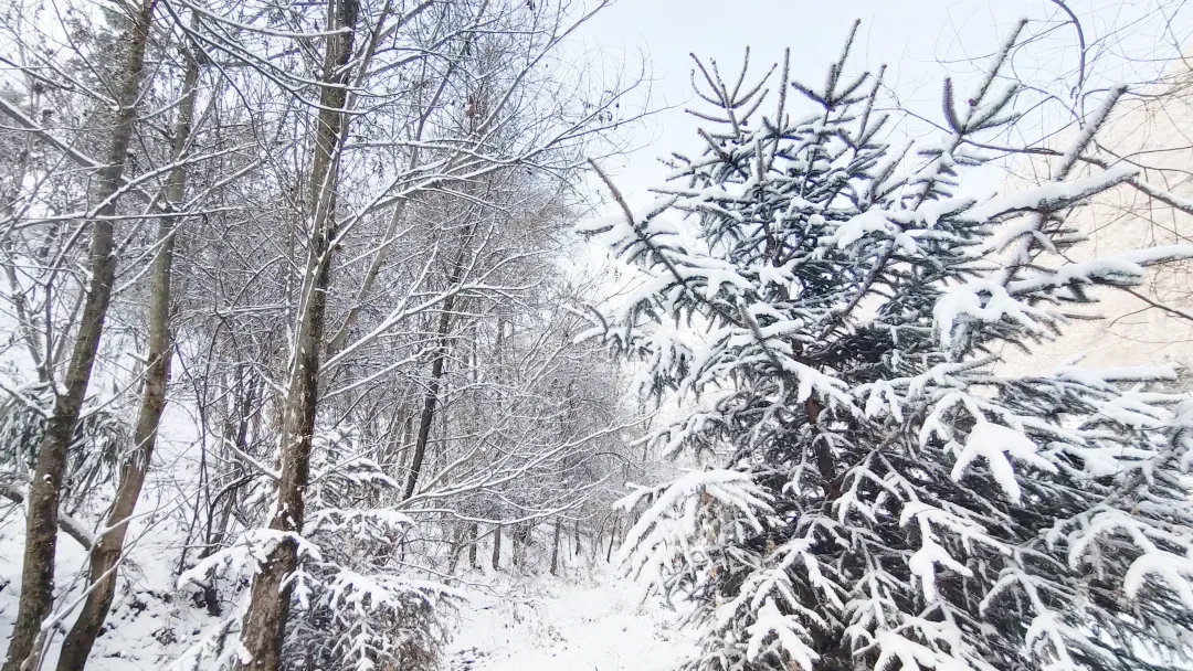 官鹅沟的雪,不是单调的纯白,而是有着千变万化的姿态。晨光中,她泛着淡淡的玫瑰金;正午时分,她闪耀着夺目的银光;黄昏时刻,她又被染上紫红色的余晖。每一步行走,脚下都会发出“咯吱咯吱”的悦耳声响,那是冬季独有的旋律。