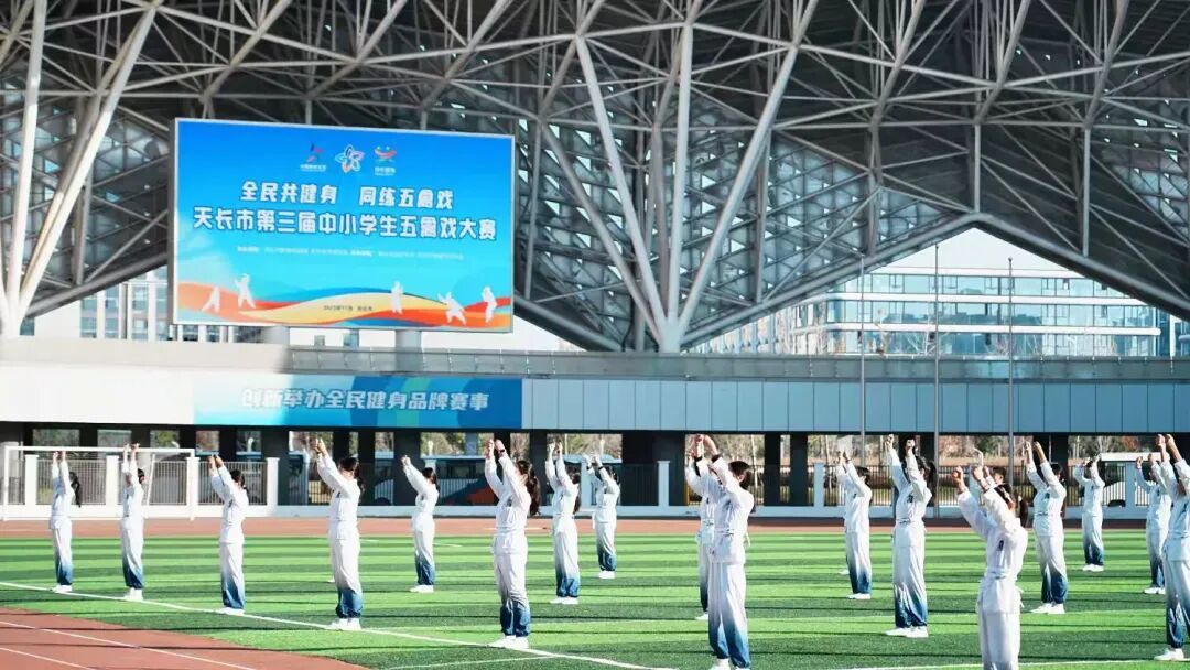 本次大赛由天长市教体局、体育总会主办,天长市实验中学、健身气功协会承办,吸引全市62所中小学参赛队伍参与竞技,6000多名青少年走上赛场演绎五禽戏这一传统健身文化。