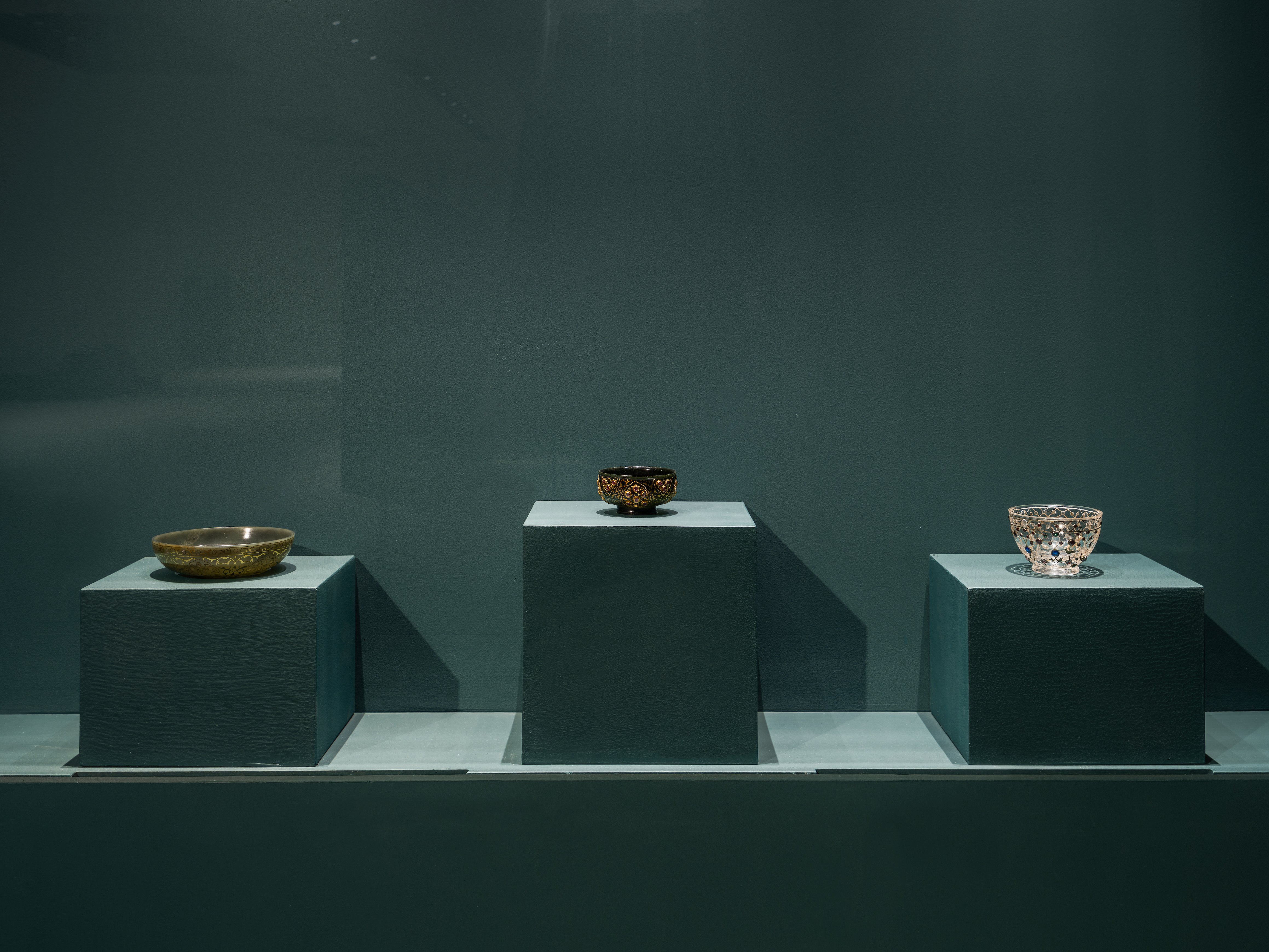 拥有戏剧与歌剧舞台设计的专业背景,德戈为展览路径注入了明确的叙事韵律:入口过渡、视觉框景、高低起伏与节奏变化,如同戏剧场景般循序展开,引导观众与作品相遇。展陈在不喧宾夺主的前提下与作品保持了一种巧妙的平衡。器物通过自身材质与纹样,静静地诉说著这些文明之间千丝万缕的历史联系。