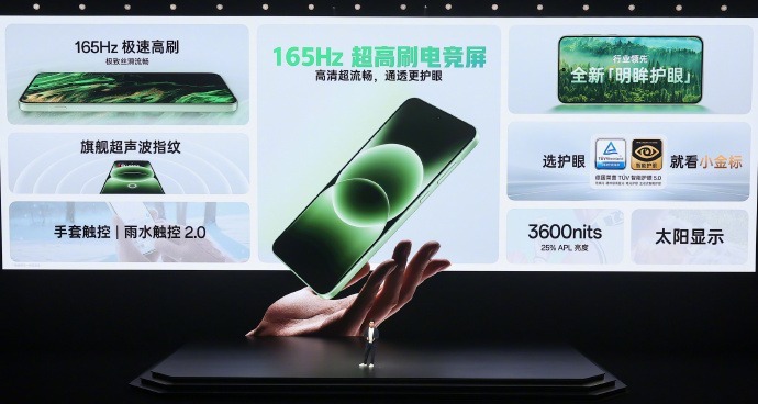 满帧生态全覆盖:行业首发《和平精英》原生165Hz,实测半小时平均帧率163.8帧,1%Low帧行业领先;《使命召唤手游》《暗区突围》等通过独家超帧技术实现165Hz,流畅度媲美PC。3600nits峰值亮度,晴天户外开镜也能看清远处敌人,告别反光“瞎打”。